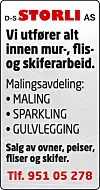 Endre Storli AS Publisert 04.01.2017 - 00:00 Sist oppdatert 23.12.2025 - 15:35 https://www.facebook.com/murmester.storli/?locale=nb_NO KategoriMur / Betong / Flis fagfolk