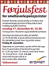 Førjulsfest for smelteverkspensjonister 17. desember 2025 kl. 13.30 Publisert 21.11.2025 - 12:22 Meld deg på innen 28. november kalender