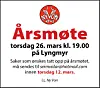 Ny Von: Årsmøte på Lyngmyr Torsdag 26. mars kl. 19.00. Saker sendes innen 12. mars. Publisert 26.02.2026 - 09:40 Sist oppdatert 26.02.2026 - 09:41 kalender