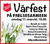 Vårfest på Frelsesarmeen Onsdag 11. mars kl. 18.00. Besøk av major Bjørn Ove Frøyseth. Publisert 05.03.2026 - 10:27 Sist oppdatert 05.03.2026 - 10:27 kalender