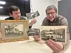 Brødrene Kristoffer (til venstre) og Inge Mikal Nødland viser fram eksempler på foto dei er interesserte i: Bilder av hus og folk, historiske hendingar på rådhusplassen eller i sentrum, interiør i butikkar, idrettsliv og oversiktsbilde av Sauda før i tida.