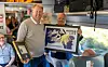 Styreleiar i Landslaget for lokalaviser (LLA) Øystein Øygarden og frimerkedirektør Roar Toresen i Posten Bring avduka det nye frimerket på Lokalavistoget torsdag. Dagen etter blei Lillian Holden frå Hallingdølen valt til ny styreleiar. Øygarden (Vest-Telemark blad) blei valt til nestleiar, saman med Maiken Voldseth (Selbyggen).