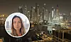 Saudabuen Juanita Flåte (innfelt) bur og arbeider i Dubai. Frå leilegheita si i 34. etasje ser ho rett ut på Palm Jumeirah, der prosjektil frå ein iransk missil traff eit hotell laurdag.