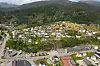 Sauda er plassert i sentralitetsklasse 5, saman med 100 andre norske distriktskommunar. På bildet ser me bustadområdet Fløgstad, delar av bustadområdet Neset og Kyrkjegata.