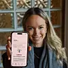 Seksjonsleiar i Haugaland Kraft Energi, Linn Marie Knarvik, viser i kundeappen «Mitt hjem» kor mykje ho har spart på å ha Norgespris.