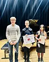 Saudaguten Vilmer Teig (14) (i midten) gjorde reint bord under Rygjakonkurransen i Stavanger i helga. Her saman med Georg Mo Foldnes og Dearesta Alfandiani, som kom på høvesvis andre og tredjeplass i same klasse.